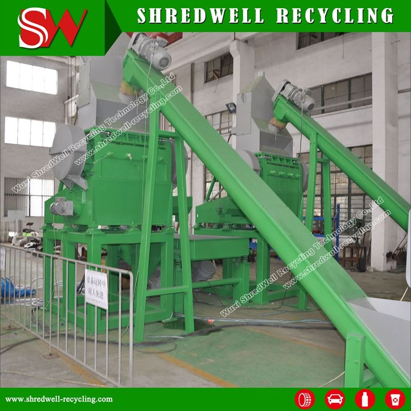 Shredwell que la picadora de papel automática del neumático del pedazo para la miga de goma se especializa diseñada como amoladora fina en el neumático que destroza el proceso, el producto final después de nuestro proceso de la granulación será miga de goma libre de 99,9% fibras, tamaño será alrededor 1-5m m.